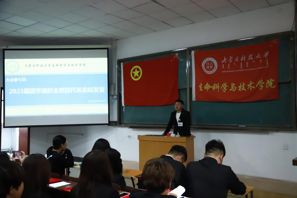 大会第四项:举行团学组织薪火相传仪式。2022届主席团向2023届主席团正式传递了团学组织的“生生不息”杯,这不仅是将学院学生团学工作的“接力棒”进行了交接传递、更是将学院“生命不息,奋斗不止”、团学组织“薪火相传,生生不息”的精神,传递给2023届团学组织。