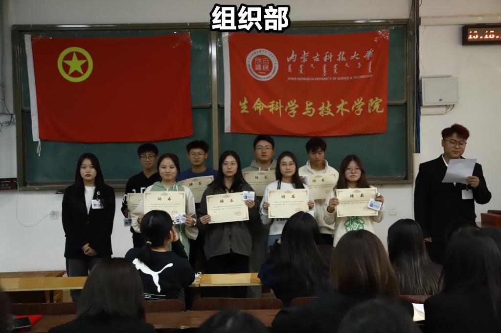 大会第六项:聘任2023届团学组织各部门干事。以部门为单位,部长携本部门成员依次上台,由部长为本部门干事颁发聘书和工作证,介绍本部门主要职责和部门成员的基本情况,并对任期内所承担工作做出表态与承诺。