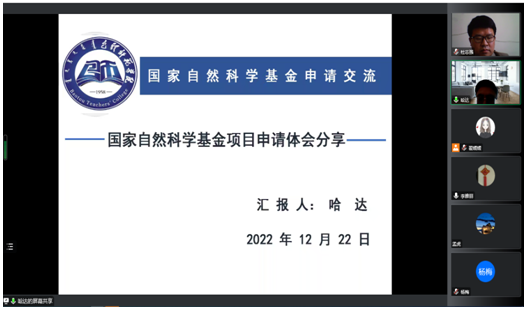 12月22日,我院邀请内蒙古大学太阳集团tyc9728哈达教授作了题为《国家自然科学基金项目申请体会分享》的专题报告,报告会由杜志强副院长主持,我院及其他学院师生70余人通过腾讯会议线上聆听了报告。