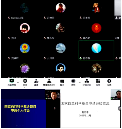 为了进一步提升我院教师科研能力,认真落实学院“十四五”规划的重点任务,学院于2022年11月3日14:30利用腾讯会议召开了“2023年度国家自然科学基金项目申报线上交流会”,参加本次会议的教师包括学院党政领导、科研团队负责人以及青年教师40余人。