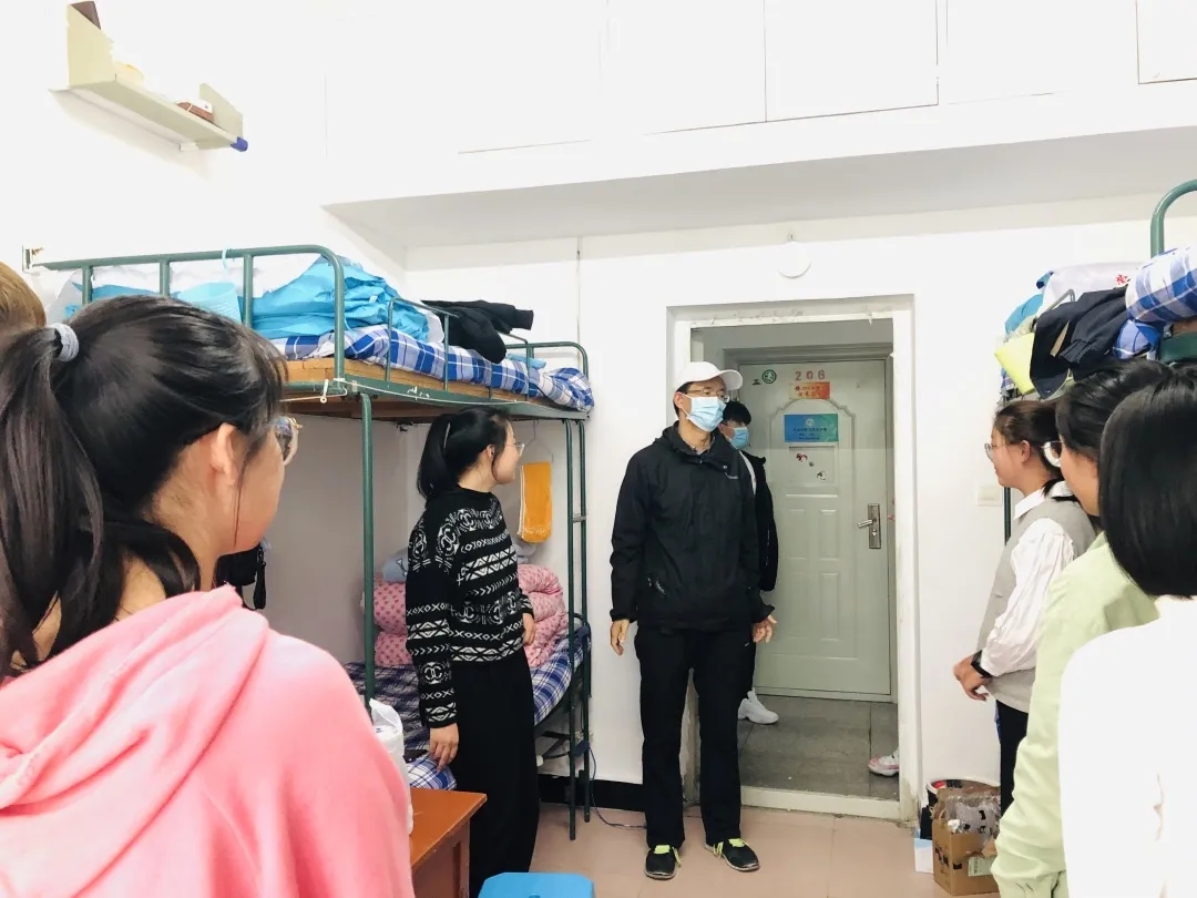 一场如约而至的相遇,太阳集团tyc9728迎来了2020级新同学,一张张崭新的面孔洋溢着入学的欣喜。为了解新生入学情况,让新生更快的适应大学生活,督促学生加强安全防范意识和寝室卫生工作,我院副书记赵良老师、辅导员袁永峰老师带领团学干部于10月10日走访新生寝室,看望新生,为他们带去生科院的温暖。