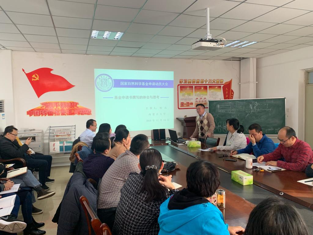 为做好我院2020年度国家自然科学基金项目申报工作,11月14日,学院邀请到内蒙古大学生命科学学院哈达教授为我院教师做题为“国家基金申请书撰写的体会与思考”的讲座,全院40余名教师聆听了此次讲座。