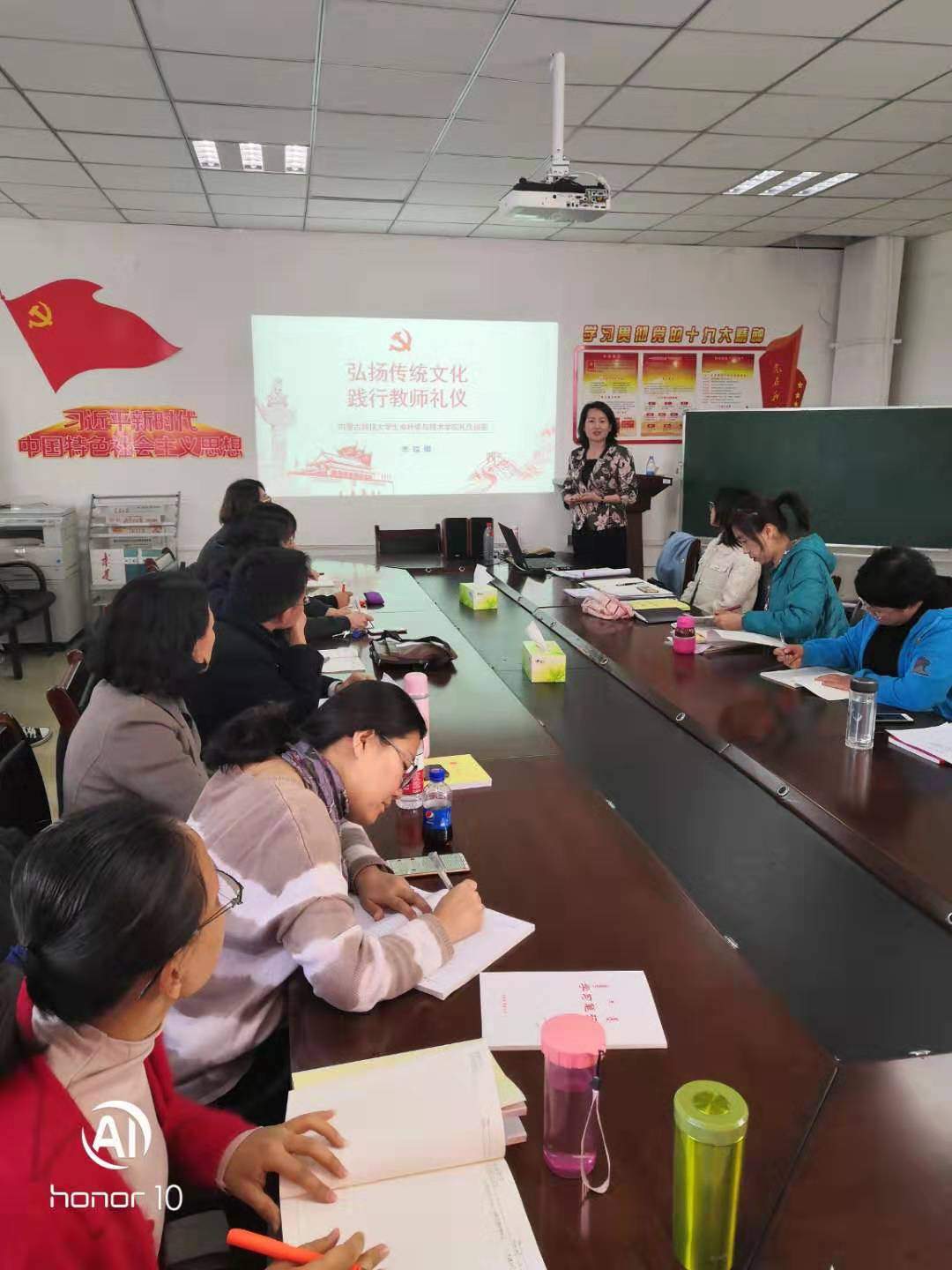 2019年10月24日下午,太阳集团tyc9728邀请党政办公室李瑞卿老师为全体教工党员做了“不忘初心、牢记使命”主题教育专题讲座,讲座题目为《弘扬传统文化、践行教师礼仪》。
