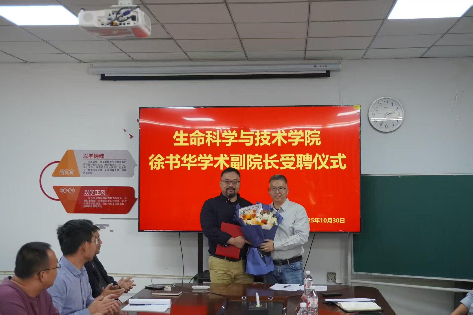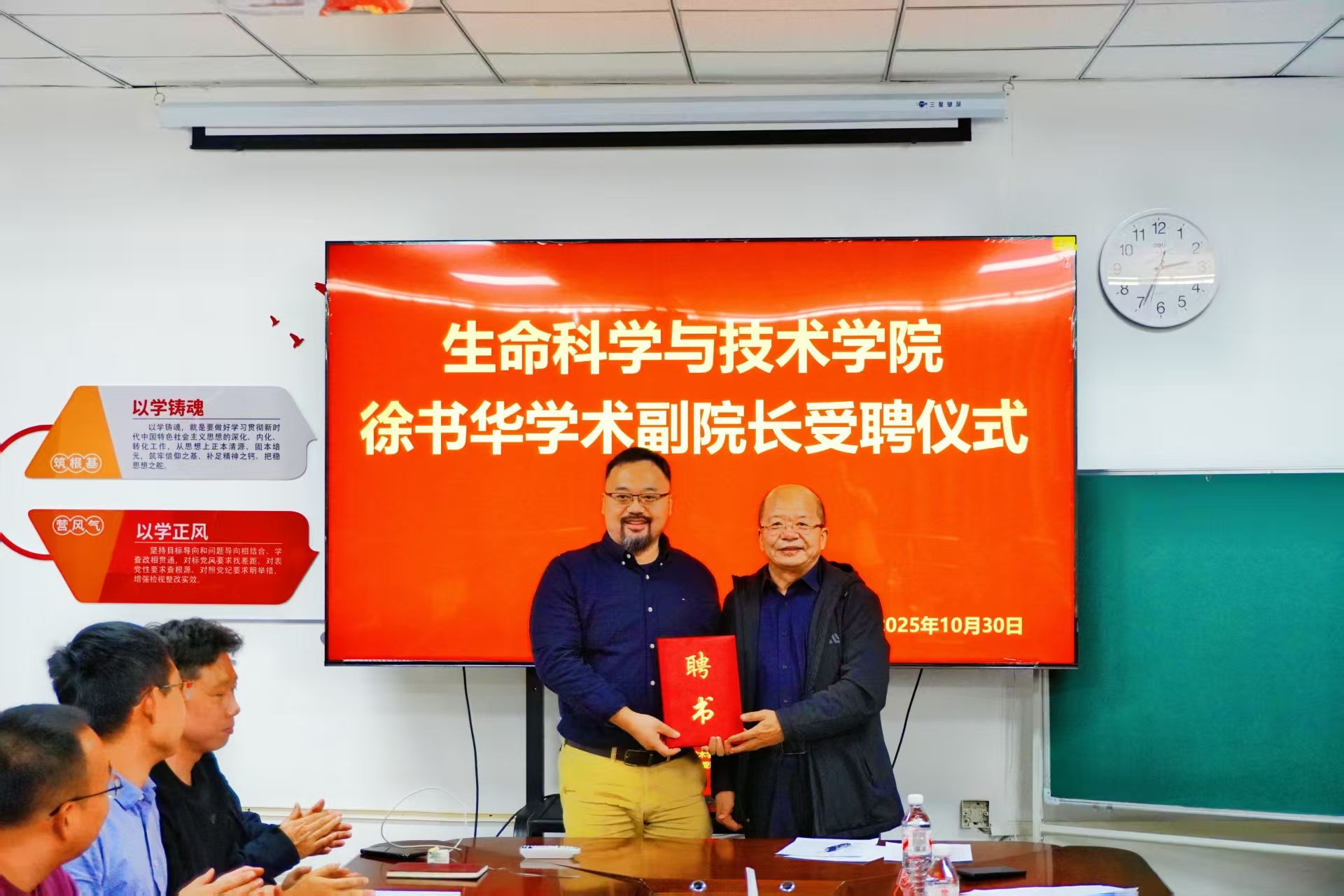 2025年10月30日,太阳集团tyc9728举行重要聘任仪式,复旦大学二级教授、国家杰出青年基金获得者徐书华正式受聘为学院兼职学术副院长。副校长屈忠义、人事处副处长定巍及学院领导班子、全体教师齐聚一堂,共同见证这一助力学科发展的重要时刻。