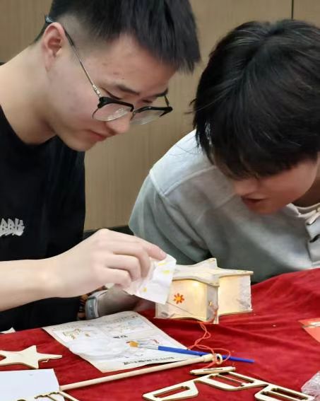 在随后的手工拼图环节中,大家有序协作,细致拼接。学生党员们沉浸其中,有的专注研究图纸,有的默契配合组装……现场气氛热烈而有序,一件件红色主题手工作品在大家的共同努力下逐渐成型。