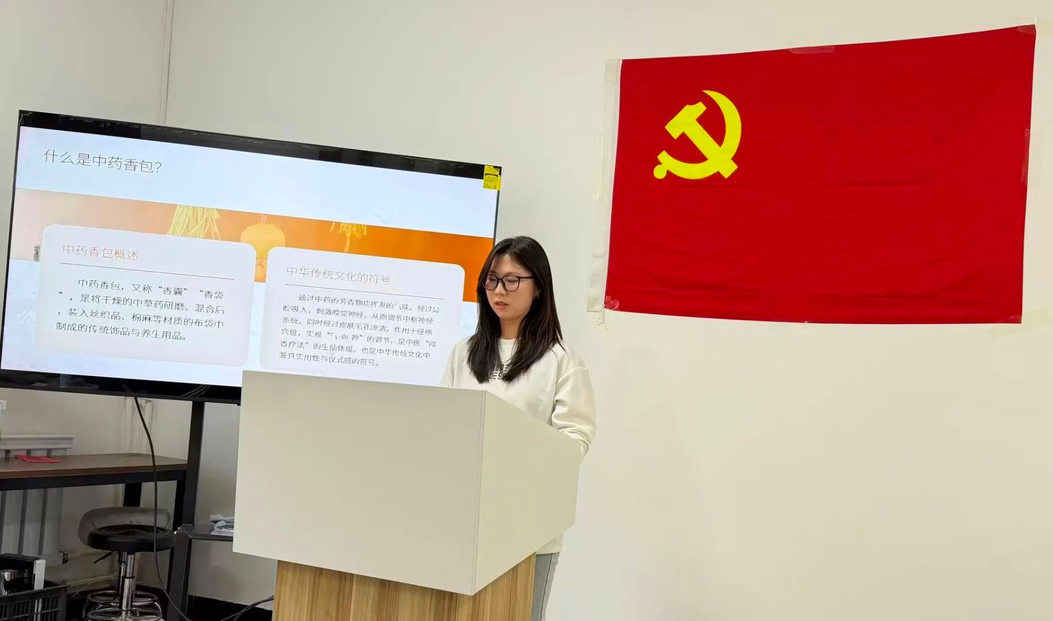 为传承中华优秀传统文化,发挥党建引领文化传承与健康养生融合的作用,11月20日,我院学生第二党支部走进老年社区,以中药香囊为纽带开展了主题党日活动暨志愿服务活动。支部成员王子琪通过PPT生动讲解传统养生智慧,其他学生党员现场帮扶指导,在药香与笑语中为社区老人们送去健康关怀。
