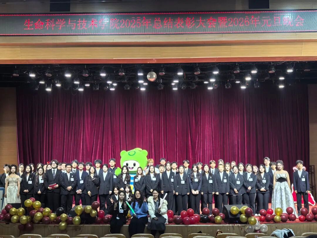 表彰环节结束后,一场洋溢着青春活力与时代气息的元旦晚会精彩上演。晚会节目均由学院师生及社团精心编排、自主创作,形式多样,内涵丰富,生动诠释了生科学子的多才多艺与无限创意。