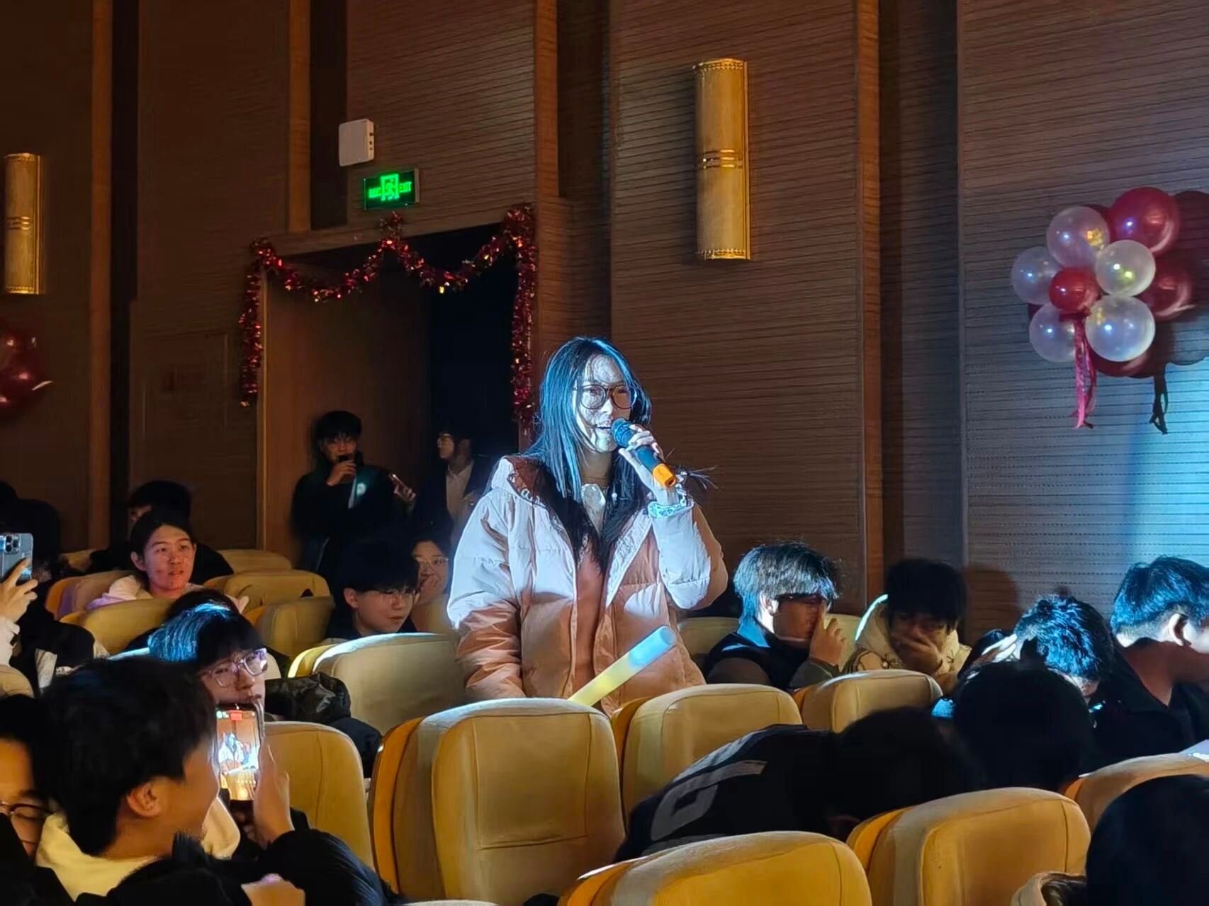 晚会在腾飞艺术团鹿鸣乐队充满活力的歌曲《你要跳舞吗》中热烈开场。随后,深情演唱的《小酒窝》、《My love》、《有点甜》、《富士山下》展现了学子们的青春情怀;汉服社团演绎的舞蹈《折枝花满衣》,衣袂飘飘,古韵悠然,彰显了文化自信;跳绳社团的《随绳舞动》活力四射,腾飞艺术团的器乐演奏《无名的人》深情动人,赢得了现场阵阵喝彩。由学生组织出演的小品《当考试还剩最后15分钟》,贴近校园生活,诙谐中蕴含思考,引发了广泛共鸣。