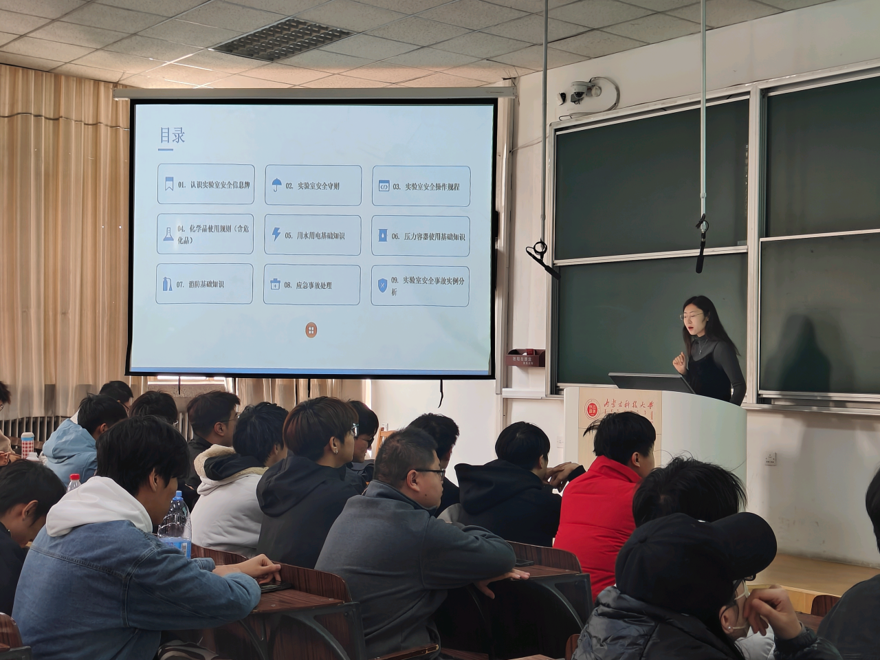 培训以"安全第一,预防为主"为核心,紧扣本科毕业生实验需求,系统讲解实验室安全核心知识,覆盖认识实验室安全信息牌,实验室安全守则,安全操作规程,化学品(含危化品)使用规则,用水用电基础知识,压力容器使用基础知识,消防基础知识,应急事故处理,实验室安全事故实例分析九大模块,系统性构建安全知识体系。实验中心秦哲老师结合高校实验室典型安全案例,深入浅出剖析违规操作的严重后果,引导学生树立"安全无小事"的责任意识。