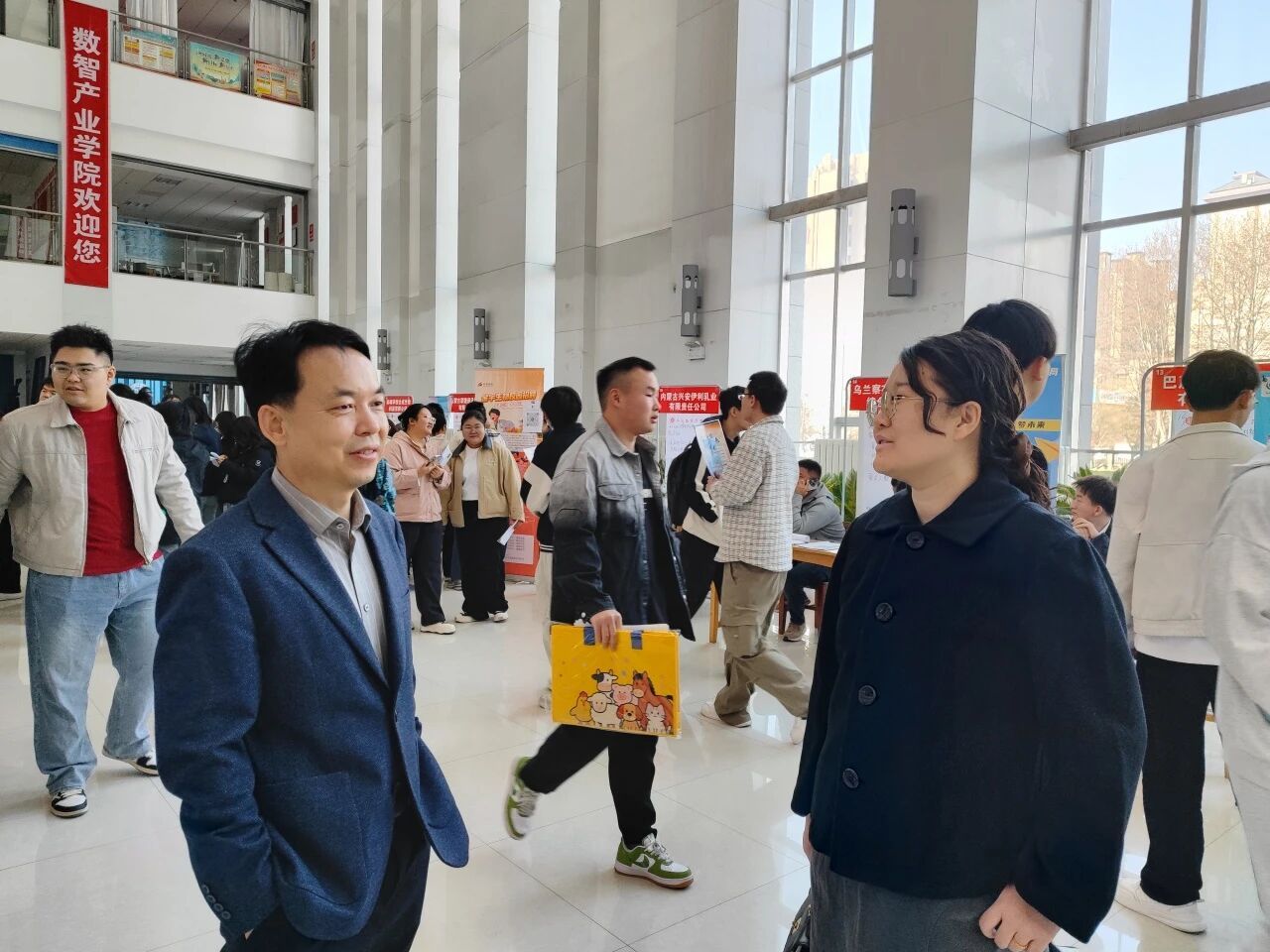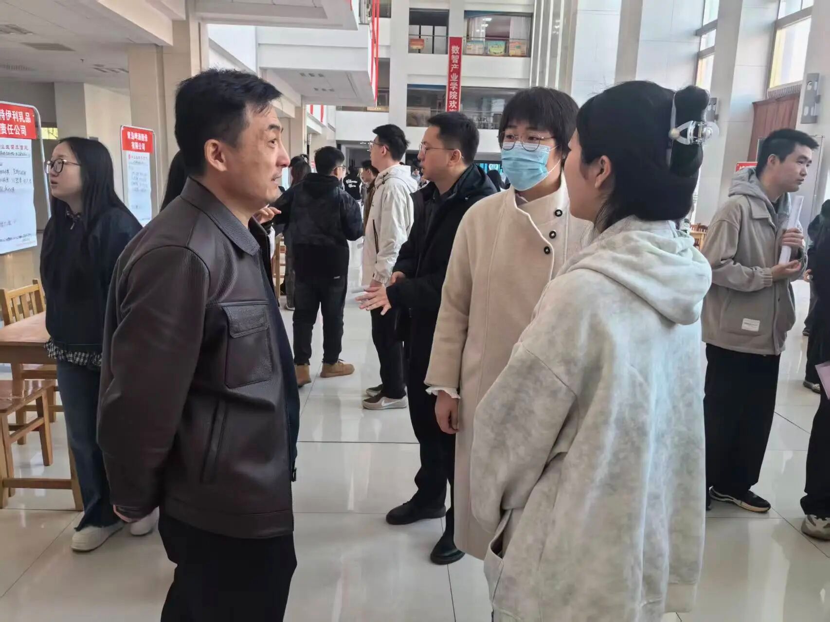 招聘会期间,学校招生就业处处长高俊峰、副处长潘文龙深入招聘会现场,与用人单位代表面对面交流,详细调研企业人才需求现状及行业发展趋势,并就进一步深化校企合作、优化人才输送机制进行探讨。