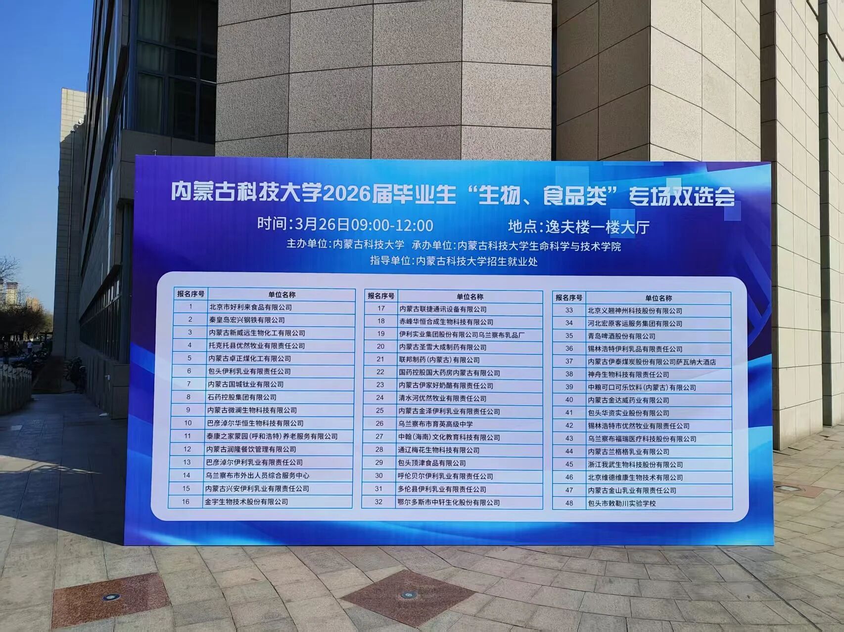 3月26日,由太阳集团tyc9728承办的9728太阳集团2026届毕业生“生物、食品类”春季专场招聘会在逸夫楼一楼大厅成功举办。本次招聘会旨在精准对接生物医药、食品工程、生物技术等相关领域人才需求,为毕业生与用人单位搭建高效务实的双向选择平台。