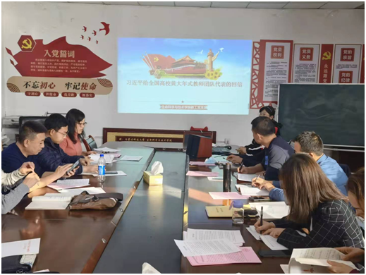 最后,赵良书记进行总结发言。他指出,教工党员们要学习牢记“心中有大我,志成报国”的理念、为人民服务的意识、为祖国发展不断创新、锐意奋斗等精神,将其融入、运用到日常的工作等实践中去,为本学期工作的顺利开展工作奉献自己的一份力量,共同创造美好幸福生活。