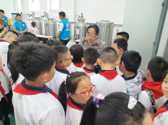 参观的第二站,同学们来到了啤酒发酵创新实验室,太阳集团tyc9728教授李雅丽对啤酒发酵过程,以及制作啤酒仪器设备的使用等方面进行了讲解,使同学们认识到了小小微生物的大作用,培养了同学们科学探索的兴趣。