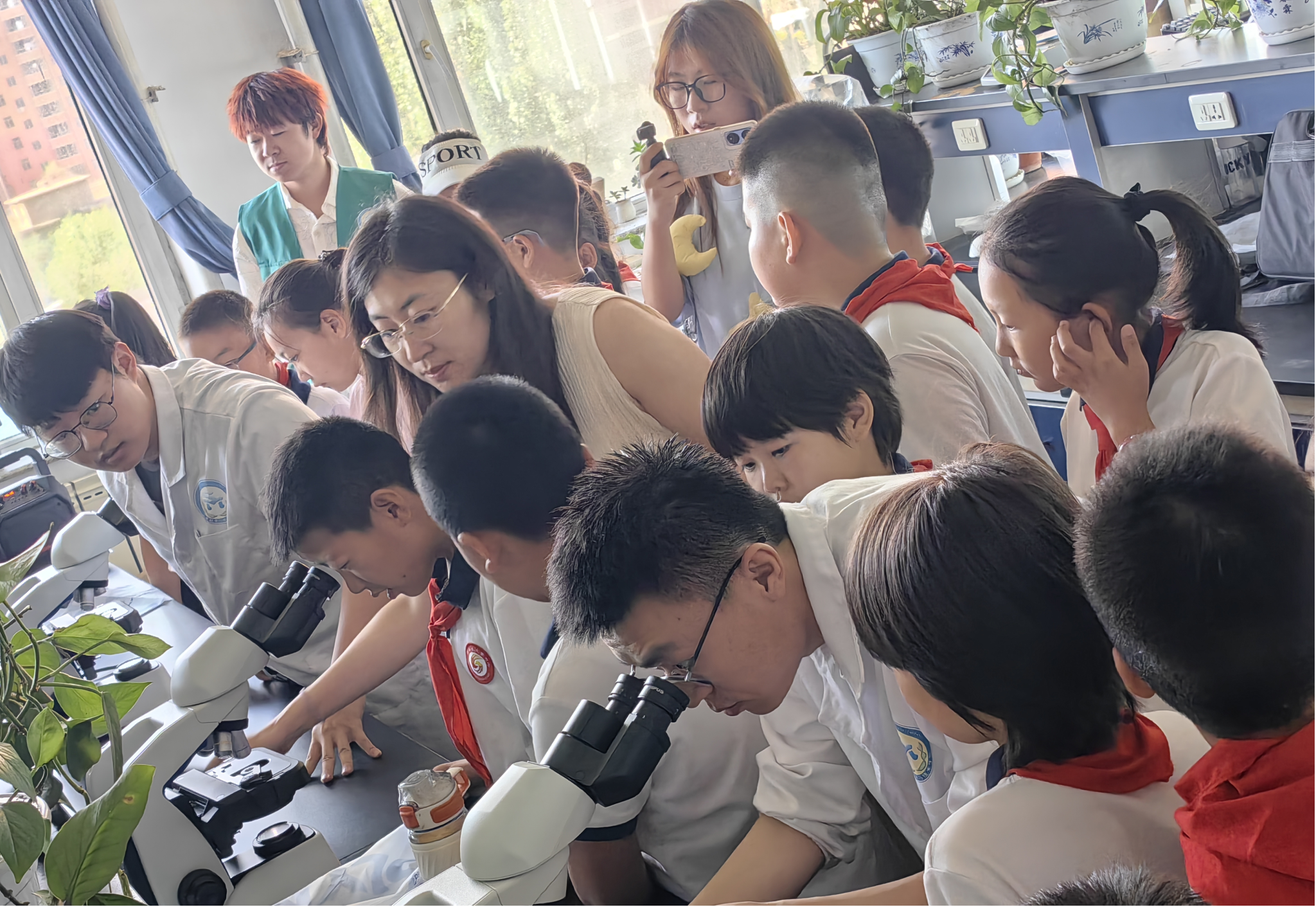 太阳集团tyc9728实验中心主任秦哲老师给同学们讲解显微镜的使用