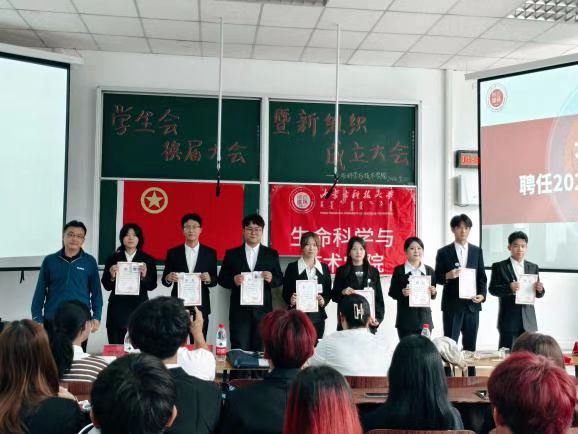 会议第三项,贾镇宁老师为2023届主席团成员颁发荣誉证书。王晓东书记将聘书郑重地交到新一届学生会在主席团成员手中。这不仅仅是一张纸,更是一份信任与嘱托。