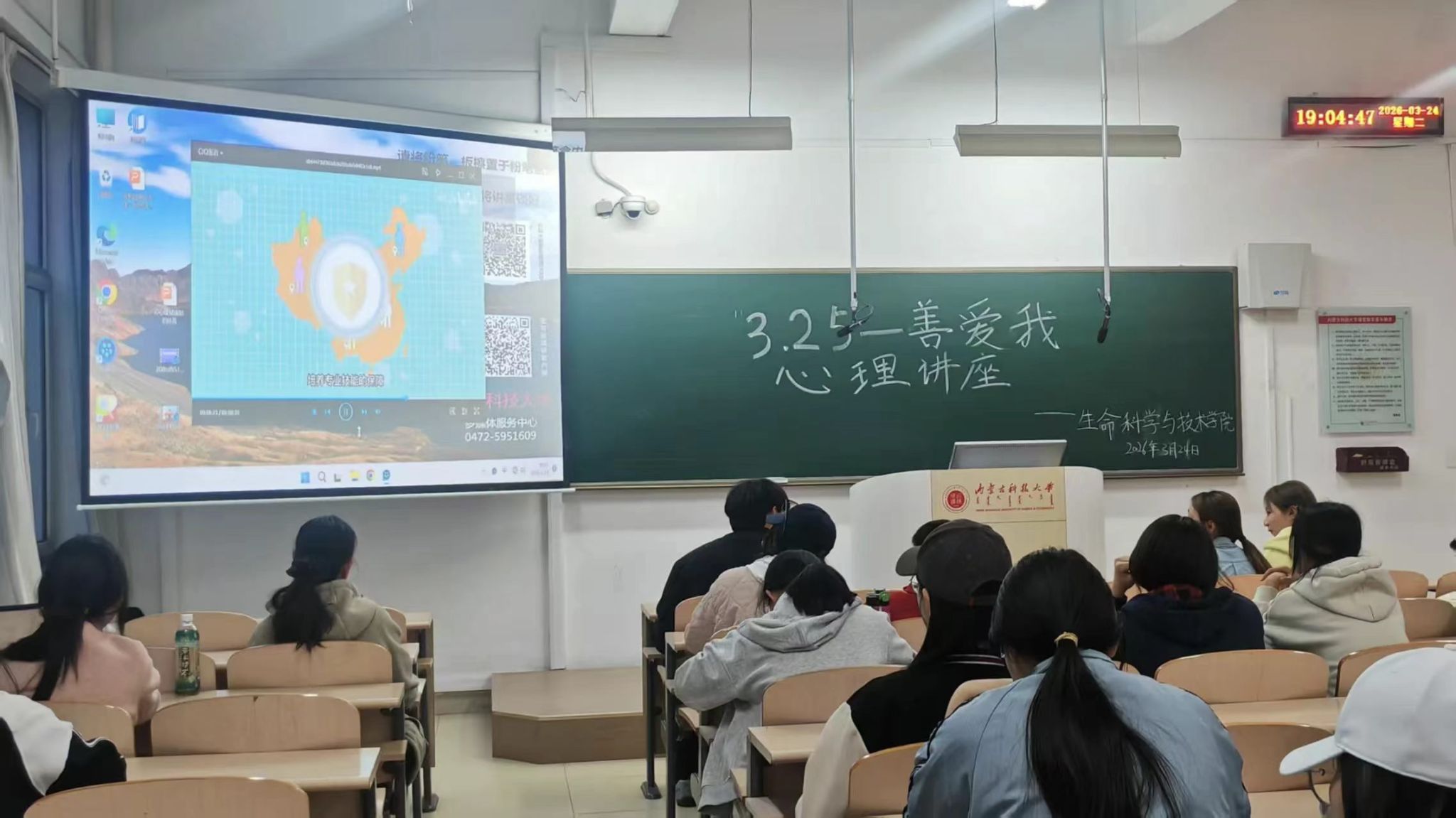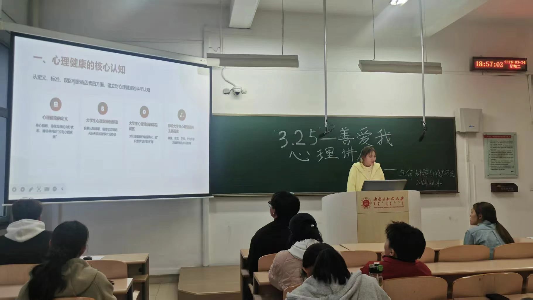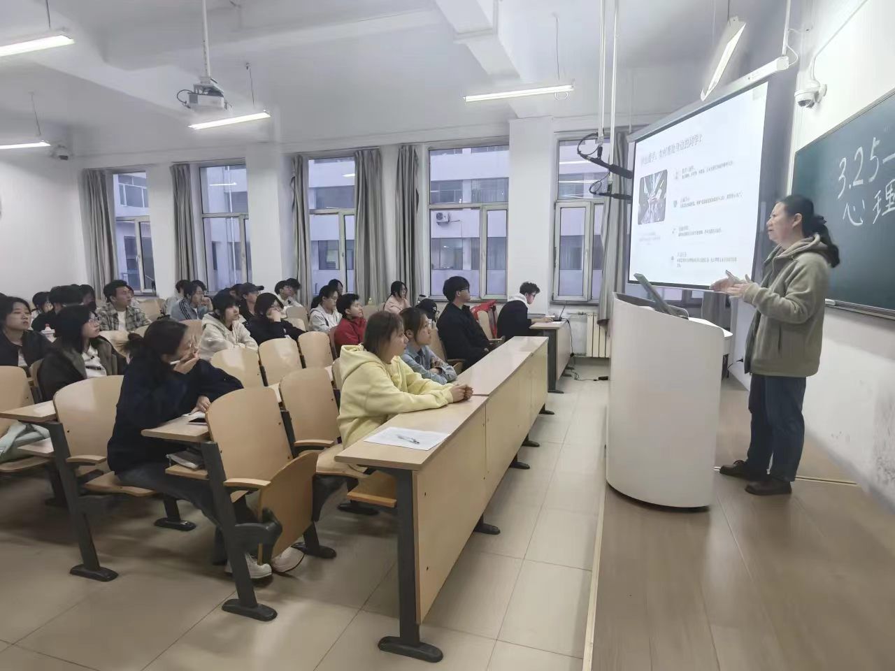 阶梯教室内,同学们带着对自我成长的期待,认真聆听每一份心灵指引。专注的眼神、认真的记录,尽显大家对心理健康知识的渴求,现场氛围庄重而温暖。